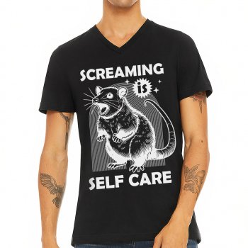 Screaming Is Self Care V-Neck T-Shirt – Possum Basic T-Shirt – Animal Humor Tee