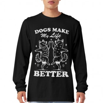Dogs Make My Life Better Long Sleeve T-Shirt – Vintage Animal T-Shirt – Cute Dogs Basic Tee