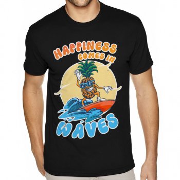 Happiness Comes In Waves T-Shirt – Surfing Pineapple Heavy Cotton Tee – Ocean Shirt
