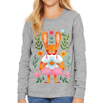Cute Rabbit Kids’ Long Sleeve T-Shirt – Spring Bunny T-Shirt for Kids – Boho Tee for Boys Girls
